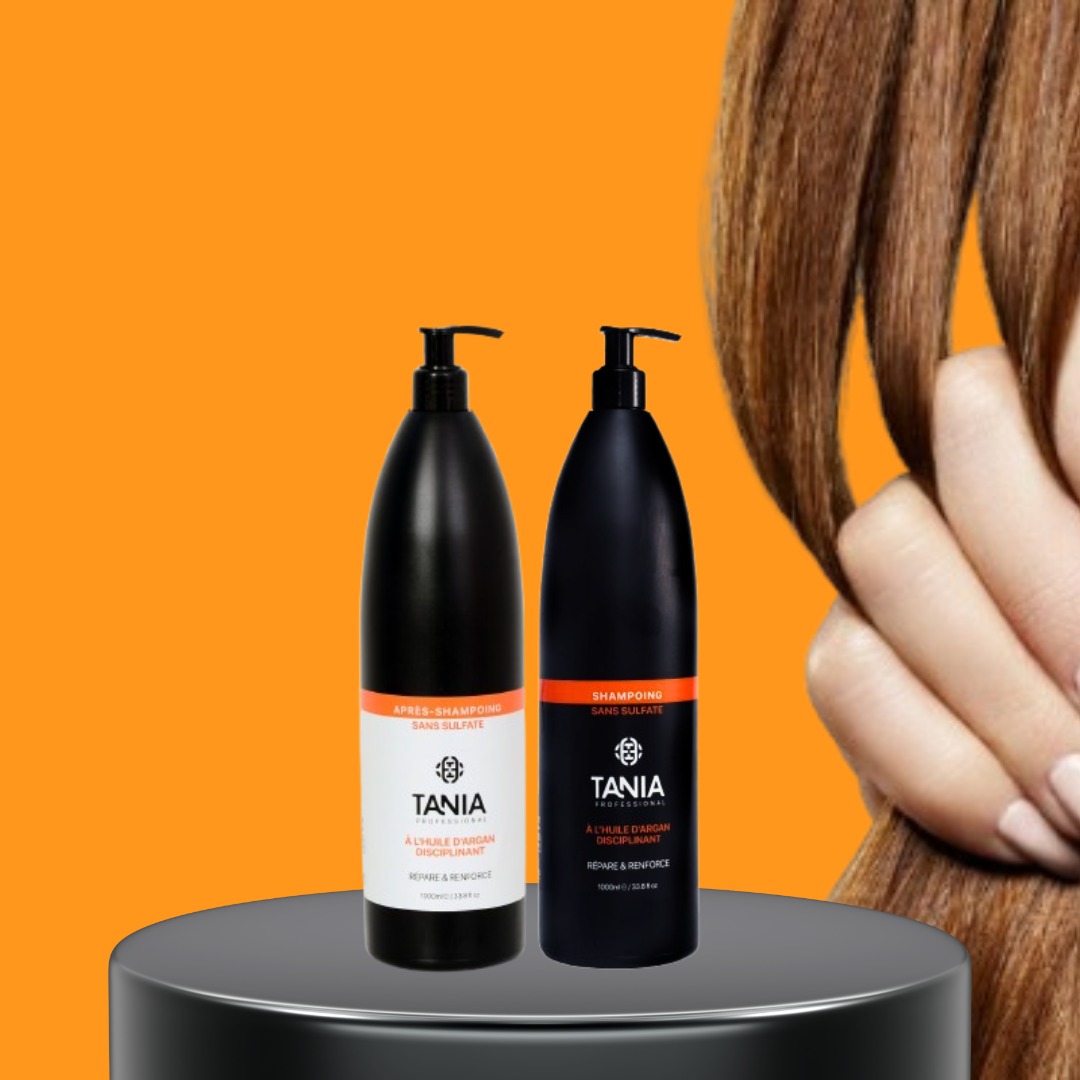 - Shampooing à l’Huile d’Argan : Commencez votre routine avec le shampooing Tania Professionnel à l’huile d’argan. Ce shampooing doux nettoie en profondeur tout en hydratant la fibre capillaire. Il prépare vos cheveux à recevoir les soins suivants, tout en leur apportant douceur et souplesse.
