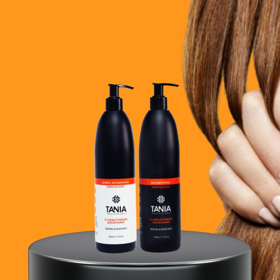 - Shampooing à l’Huile d’Argan : Commencez votre routine avec le shampooing Tania Professionnel à l’huile d’argan. Ce shampooing doux nettoie en profondeur tout en hydratant la fibre capillaire. Il prépare vos cheveux à recevoir les soins suivants, tout en leur apportant douceur et souplesse.